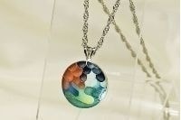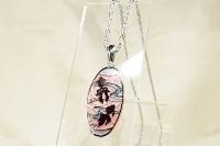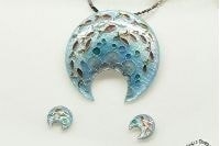 *枠無しの七宝製品は裏面に接着剤で留め金を貼り付けます。市販の枠有の材料内にデザインを配置しての製作も可能です。