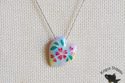 *桜の花びらが沢山詰まった帯留めです。乳白色とあわいピンク色で春の訪れを感じさせてくれます。帯留め用の枠に入っているので帯が傷つきません。