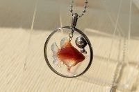 トップの輪は950銀の丸枠に純銀の水玉、金魚は純銀の板を切り抜き後七宝加工