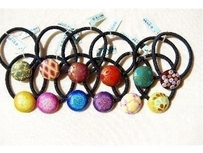 *下地に銀箔を仕込み、七宝の透明色を使った髪留めゴムです。