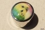 市販の枠有帯留め材料の中にお客様がデザインされた色柄を配置することも可能です。