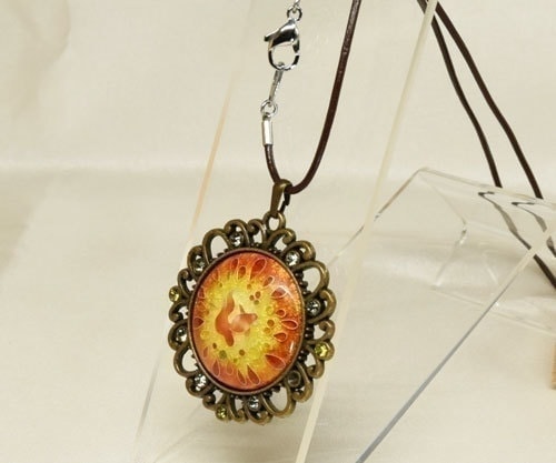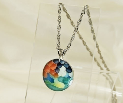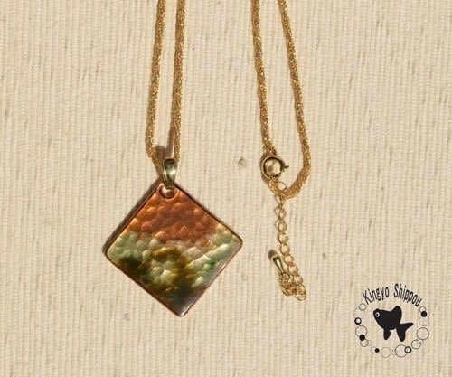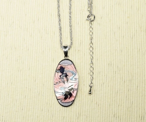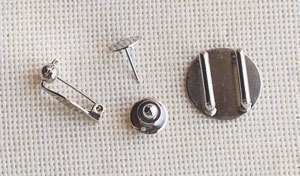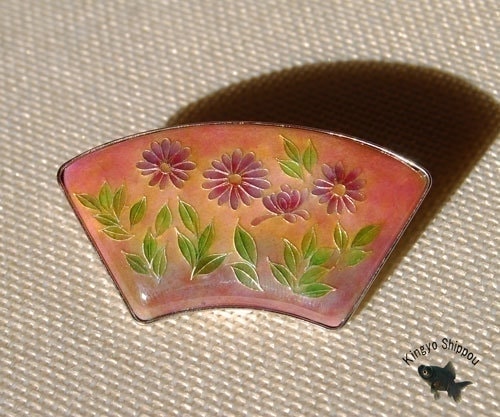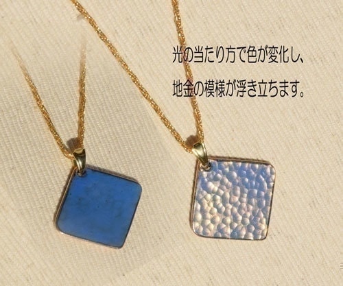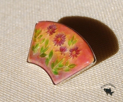 *枠無しの七宝製品は裏面に接着剤で留め金を貼り付けます。市販の枠有の材料内にデザインを配置しての製作も可能です。