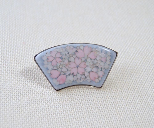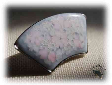 *桜の花びらが沢山詰まった帯留めです。乳白色とあわいピンク色で春の訪れを感じさせてくれます。帯留め用の枠に入っているので帯が傷つきません。